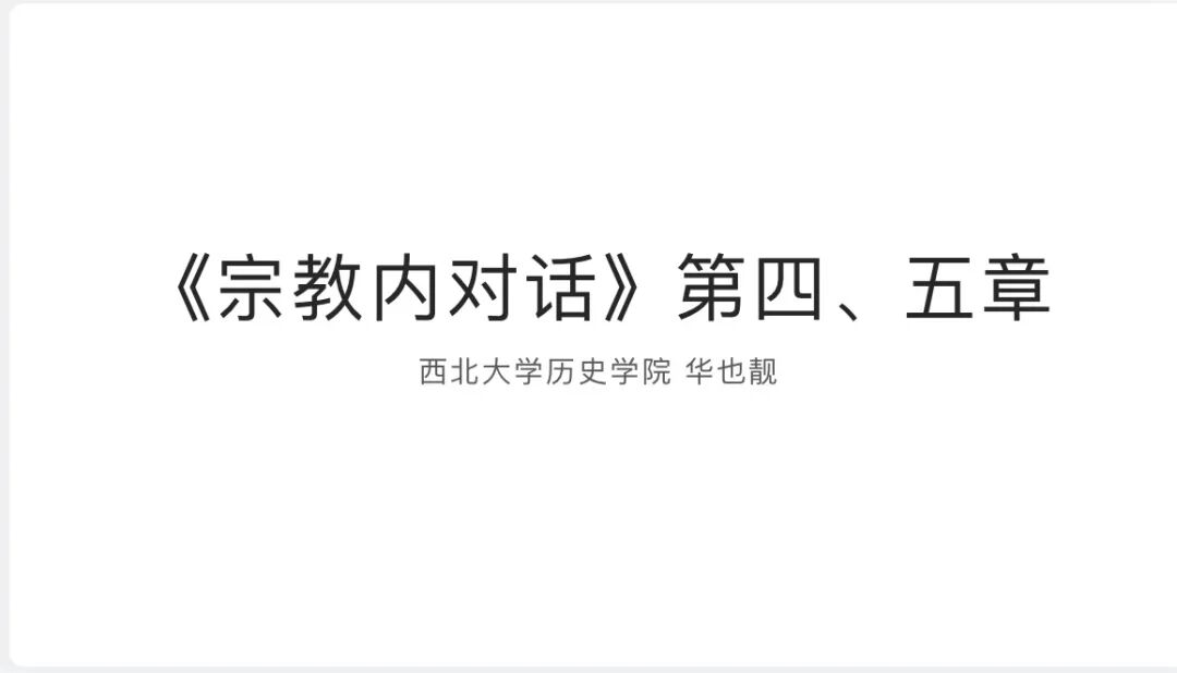 2025年6月9日晚,西北大学玄奘研究院读书会第116期活动在线上举行。本期读书会的汇报内容为雷蒙·潘尼卡《宗教内对话》第三至五章,由西北大学历史学院学院硕士生周子菲与华也靓同学进行报告。本期读书会邀请到南京大学哲学系博士、湘潭大学哲学与历史文化学院(碧泉书院)讲师翁后发老师担任评议人。西北大学历史学院李永斌副教授、西北大学区域国别学院谢志斌副教授及西北大学历史学院、哲学学院以及中国人民大学、山东大学、贵州大学等高校和单位20余名师生在线上一同参与了本期读书会。