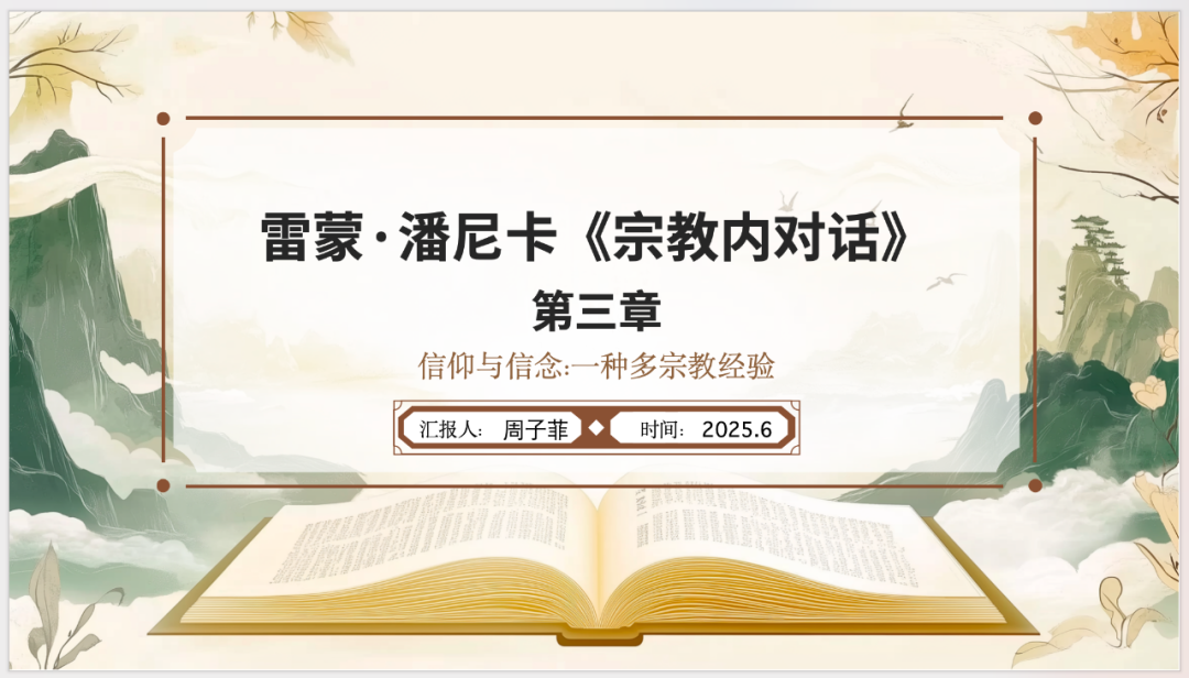 周子菲同学接下来汇报了第二部分,根据文本内容结合学界现有研究成果,提出了五个问题并给出解答。问题一:多宗教归属的身份整合问题。个体能否同时忠于多个宗教传统而不丧失身份统一性?潘尼卡结合自身经历,他从基督教“启程”,在印度教中“发现自我”,再以佛教“回归”,仍保持基督徒身份。这要求区分“信念的多元性”与“信仰的统一性”。王桂彩老师在《一个事件,三重事实——雷蒙·潘尼卡论跨文化身份》中援引潘尼卡的说法:“我的个人身份不是其存在的构成性,要素或因素的纯概念的统一性,而是这样一种意识及那些要素或因素属于一个整体。”可见潘尼卡认为个人身份是一种意识,且这种意识它是同属于一个整体的。此外,身份还与我们思考身份的方式密切相关,这种方式遵从两种原则。第一是同一原则,第二是非矛盾原则。如果你是基督徒,就意味着你不是一个印度教徒,而印度教徒被理所当然的认为是非基督徒。印度人是倾向于以包容的方法,第一原则同一原则去思考身份。一个宗教之所以是宗教,是因为他与宗教这一观念相认同。当我是印度教徒时,我才是印度教徒。我越是一个印度教徒,就越与作为纯宗教的印度教相认同。身为一个印度教徒,我去参加基督教的盛世不会有顾忌。不会觉得背叛了自己的印度教。印度教徒会认为,当他是一个更好的印度教徒时,他也会是一个更好的基督徒。在他看来,同时是印度教徒和非印度教徒是矛盾的,但同时是印度教徒和基督教徒却不矛盾,这就和记录图的思考方式是截然不同的。由此可见,我们的身份定位和思考身份的方式是分不开的。不能以一种单一的,客观的标准来确定身份,也就是所谓的部落性宗教成员的身份去确认。周子菲同学认为此处对应了本书第三章当中所讲,基督教和印度教的终极实在问题具有共通性这一点。本章第一节中,潘尼卡自称拥有三种宗教身份,基督徒、印度教徒和佛教徒。但他又认为多个终极是不可能共存的,即便可以共存,他们各自的终极性也已经被取消掉了,不再是他们本身。可见潘尼卡是认为身份是不能用一种单一客观的外在标准来确认。问题二:关于信仰与信念的区分。潘尼卡提出“信仰”是人与超越者连结的普遍人类学维度,而“信念”是其在特定文化中的具体表达。关于这种区分能否真正解决宗教排他性与相对主义的矛盾?潘尼卡指出,信仰是“赤裸的”、超越教义的,而信念是信仰在历史传统中的“衣装”。例如,基督徒的“三位一体”和印度教徒的“梵我合一”是同一终极实在的不同文化表达。周子菲同学接着结合王桂彩老师的分析,认为虽然信仰和信念这两者是不可分离的,但是他们两者也不能混为一谈。当我们有意识的让我们的信仰保持无限的开放性时,我们的信仰就会保持成长和运动。而不再成不变的完全维生于我们特定的信念。信仰和信念之间的健康张力,正是使我们可能走出自己的信念体系,理解和体验其他信仰世界的驱动力。由此,我们可以在最奥秘,最深的层面上经历不止一种身份。问题三:宗教内对话的方法。宗教内对话这一理论是潘尼卡提出的重要理论之一。结合第三章内容,首先潘尼卡认为宗教间的对话需要以宗教内对话作为前提的,也就是个体需要先在自身的信仰深处与他者去相遇。钱雪松老师在《潘尼卡“宗教内对话”思想初探》中总结,宗教内对话是指在对话者内心所开展的具有宗教意义的跨宗教对话。这一对话要求双方都必须在任何的教育相遇之前彼此相遇,而宗教内对话就是要成为这样一种人相遇。这种人相遇一方面不只是个体的相遇,另一方面也不仅仅是教育的相遇的这么一种相遇的方法。所以它实际上是一种对话的对话,首要目的是在承认自身有限性的前提下,力求通过向他者的开放而走向圆满。这种开放无论是垂直向度,还是水平向度都要去力求开放并走向圆满,因而这是一种跨宗教的宗教活动。问题四:“成长”作为宗教相遇的核心范畴。潘尼卡强调,宗教在相遇当中需要成长,而成长是对自身真理的深化而非抛弃。如基督教去整合希腊哲学,形成了三位一体教义。王桂彩老师在《多元论·对话·文化间哲学》中指出,在潘尼卡看来,成长是指导宗教兼相对一种合适范畴。宗教意识需要发展,宗教本身也在发展,这整个时代也都处于一种成长当中,就像整个宇宙都在膨胀。并且这种成长,它不仅仅是线性的发展,它其中也有革命性的转变,它是一种既包含死亡又包含新生的过程。潘尼卡在这种成长中发现了人的自由所在,人不仅是自己生命的,也是宇宙生命的合作创造者、塑造者和建造者。问题五:宗教对话中的解释学。解释在宗教对话中是一个重要环节。潘尼卡承认,术语是不可以直接翻译的,但是可以通过相应来发现功能等价系。就例如说基督和克里斯纳不可直接翻译,但可以通过这种相应发现二者都象征着神圣者的介入,都指向了一种终极实在的问题。仍接上文王桂彩老师指出,这种解释是卓越的宗教行动,因为他承认我与另一个的连接。我个体的不足以及走出我自己,超越我自己,以便拯救自己的需要。这就是潘尼卡塔所讲的对话,就是去主张以一种合适的方式,将两种不同的象征放在一起做思考,这种合适的方式是发现两个传统之间的相应的关联。这一方法并不暗示着一个体系优于另一个体系,也不暗
